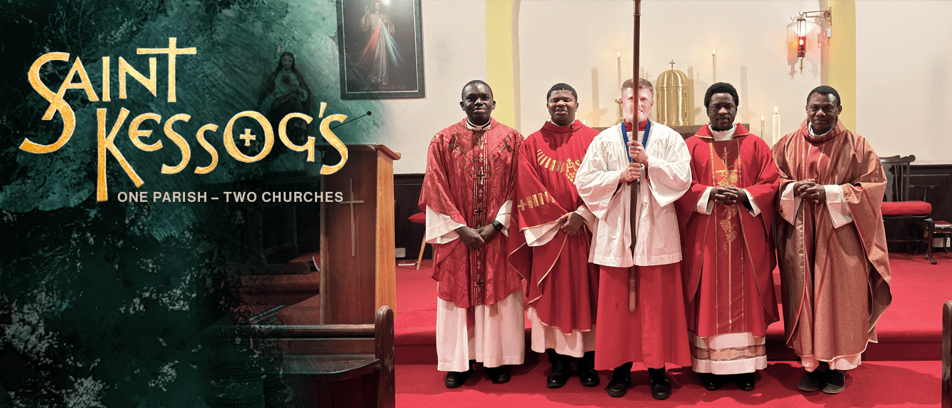 On the first Sunday of each month, the usual Sunday Mass times swap between the churches, with the earlier Mass at St Kessog’s and the