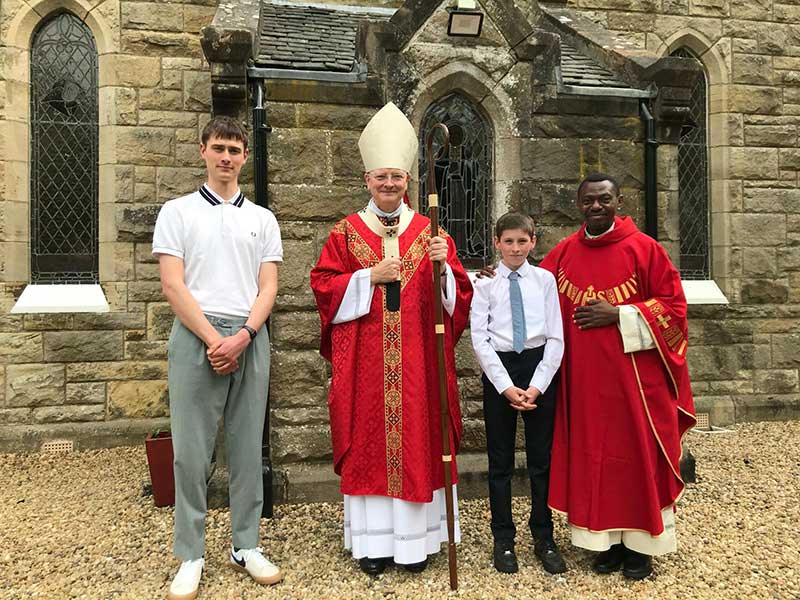 Laying on of hands – The candidate kneels as the bishop calls upon the Holy Spirit. With a sponsor’s hand on their shoulder, the bishop places his hands on the candidate as a sign of God’s blessing and strength.